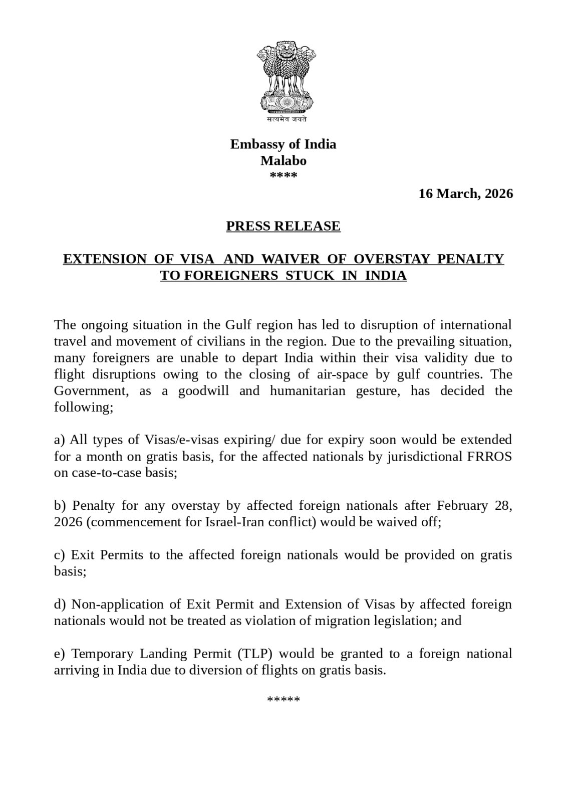 - Press Release regarding guidelines for ICAO Complaint